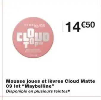 Actuellement en offre chez Monop' : MAYBELLINE Mousse joues et lèvres Cloud Matte 09 Int ✅ Valable du 20-01 au 1-02.