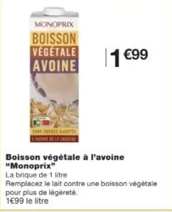 Offre MONOPRIX Boisson végétale à l'avoine chez Monop'