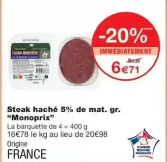 MONOPRIX Steak haché 5% de mat. gr. offres et promotions en ligne chez Monop'