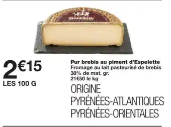 L'offre est disponible dans plusieurs magasins, vérifiez tous les produits pour obtenir le Pur brebis au piment d'Espelette le moins cher. Si vous souhaitez savoir si l'article est en vente avec une plus grosse remise dans un autre magasin, consultez la catégorie 'Supermarché'. Ces offres pourraient aussi vous intéresser : Pur brebis au piment d'Espelette, Pur vache au piment d'espelette & Piment d'espelette a.o.c.
