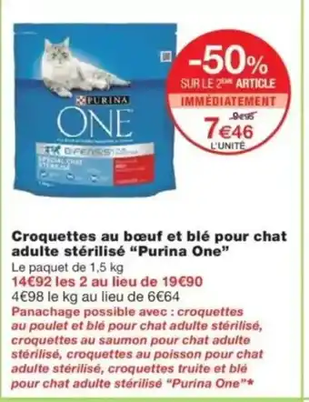 PURINA ONE Croquettes au bœuf et blé pour chat adulte stérilisé offres et promotions en ligne chez Monop'