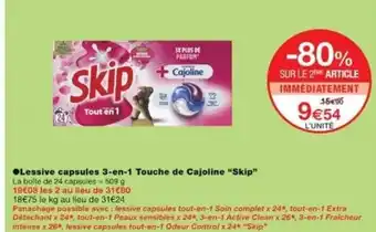 Actuellement en offre chez Monop' : SKIP Lessive capsules 3-en-1 Touche de Cajoline ✅ Valable du 20-01 au 1-02.