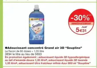Actuellement en offre chez Monop' : SOUPLINE Adoucissant concentré Grand air 3D ✅ Valable du 16-02 au 1-03.