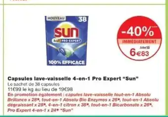 Offre SUN Capsules lave-vaisselle 4-en-1 Pro Expert chez Monop'