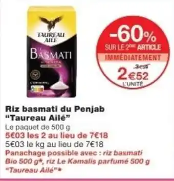 Actuellement en offre chez Monop' : TAUREAU AILÉ Riz basmati du Penjab ✅ Valable du 20-01 au 1-02.
