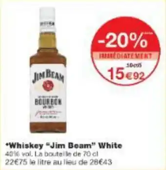 L'offre est disponible dans plusieurs magasins, vérifiez tous les produits pour obtenir le *whiskey jim beam white le moins cher. Si vous souhaitez savoir si l'article est en vente avec une plus grosse remise dans un autre magasin, consultez la catégorie 'Supermarché'. Ces offres pourraient aussi vous intéresser : JIM BEAM Whiskey White, JIM BEAM Bourbon & Bourbon JIM BEAM.