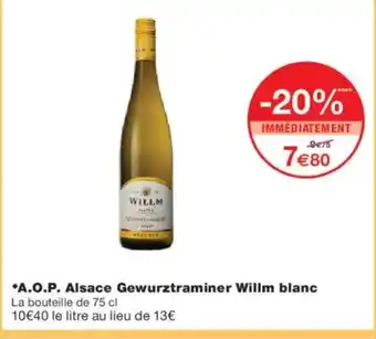 A.O.P. Alsace Gewurztraminer Willm blanc : offres et promos Monoprix à découvrir