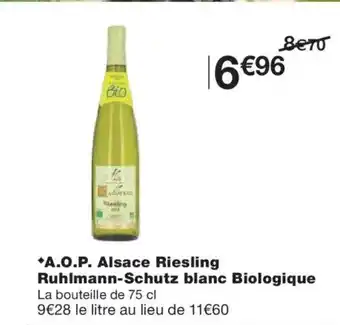 A.O.P. Alsace Riesling Ruhlmann-Schutz blanc Biologique offres et promotions en ligne chez Monoprix