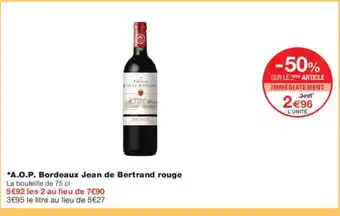 A.O.P. Bordeaux Jean de Bertrand rouge offres et promotions en ligne chez Monoprix