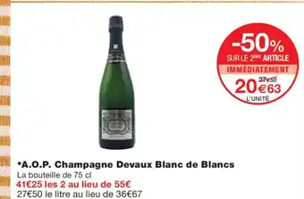 En plus de l'offre A.O.P. Champagne Devaux Blanc de Blancs, Monoprix propose une large gamme de produits. Consultez le Catalogue Monoprix hebdomadaire pour découvrir les meilleures offres et promotions. En plus de A.O.P. Champagne Devaux Blanc de Blancs, il y a aussi : Aoc - champagne brut blanc de blancs, HOMMAGE A.O.P. Chamapgne Devaux & A.O.P. Champagne Thienot brut.