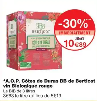 Offre A.O.P. Côtes de Duras BB de Berticot vin Biologique rouge chez Monoprix