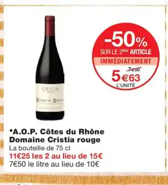 Actuellement en offre chez Monoprix : A.O.P. Côtes du Rhône Domaine Cristia rouge ✅ Valable du 24-03 au 6-04.