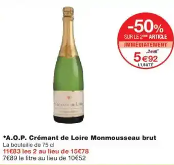 Offre A.o.p. crémant de loire monmousseau brut chez Monoprix