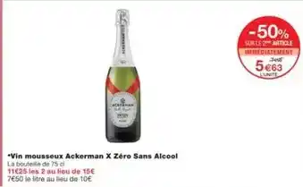 Ackerman - vin mousseux x zéro sans alcool offres et promotions en ligne chez Monoprix