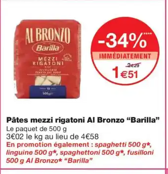 Actuellement en offre chez Monoprix : BARILLA Pâtes mezzi rigatoni Al Bronzo ✅ Valable du 20-01 au 1-02.
