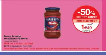 Actuellement en offre chez Monoprix : BARILLA Sauce tomate arrabbiata ✅ Valable du 20-01 au 1-02.
