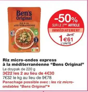 BEN'S ORIGINAL Riz micro-ondes express à la méditerranéenne : offres et promos Monoprix à découvrir