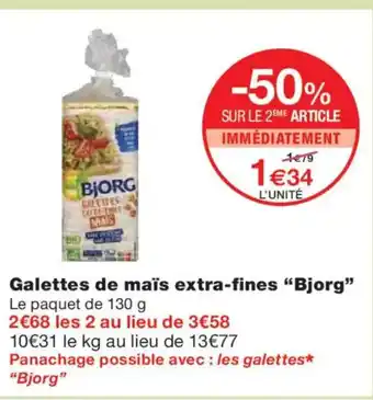 Actuellement en offre chez Monoprix : BJORG Galettes de maïs extra-fines ✅ Valable du 21-04 au 3-05.