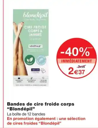 Actuellement en offre chez Monoprix : BLONDÉPIL Bandes de cire froide corps ✅ Valable du 20-01 au 1-02.