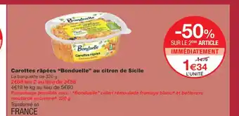 Offre BONDUELLE Carottes râpées au citron de Sicile chez Monoprix