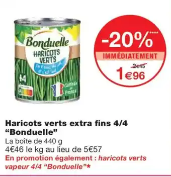 Actuellement en offre chez Monoprix : BONDUELLE Haricots verts extra fins 4/4 ✅ Valable du 20-01 au 1-02.