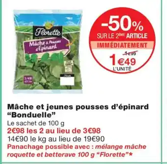 Actuellement en offre chez Monoprix : BONDUELLE Mâche et jeunes pousses d'épinard ✅ Valable du 17-02 au 1-03.