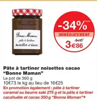BONNE MAMAN Pâte à tartiner noisettes cacao : offres et promos Monoprix à découvrir