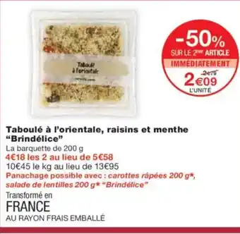 BRINDÉLICE Taboulé à l'orientale, raisins et menthe offres et promotions en ligne chez Monoprix