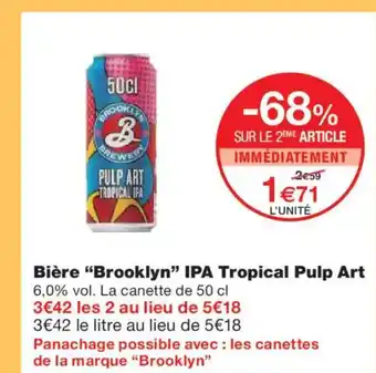 BROOKLYN Bière IPA Tropical Pulp Art offres et promotions en ligne chez Monoprix
