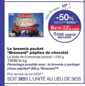 Actuellement en offre chez Monoprix : BROSSARD Le brownie pocket pépites de chocolat ✅ Valable du 17-02 au 1-03.