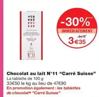 Actuellement en offre chez Monoprix : CARRÉ SUISSE Chocolat au lait N°11 "Carré Suisse" ✅ Valable du 21-04 au 3-05.