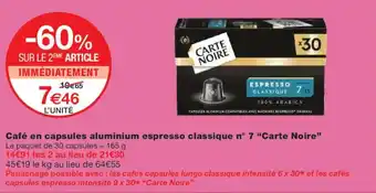 Actuellement en offre chez Monoprix : CARTE NOIRE Café en capsules aluminium espresso classique n° 7 ✅ Valable du 20-01 au 1-02.