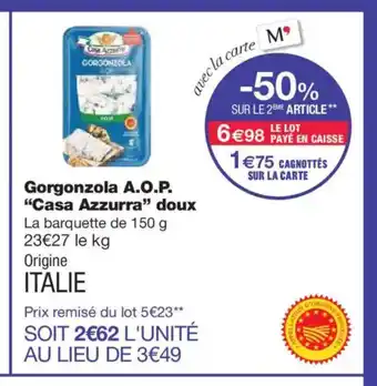 Offre CASA AZZURRA Gorgonzola A.O.P doux chez Monoprix