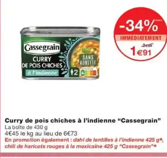 Actuellement en offre chez Monoprix : CASSEGRAIN Curry de pois chiches à l'indienne ✅ Valable du 1-01 au 18-01.