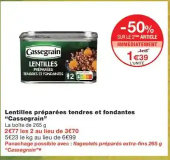 Offre CASSEGRAIN Lentilles préparées tendres et fondantes chez Monoprix