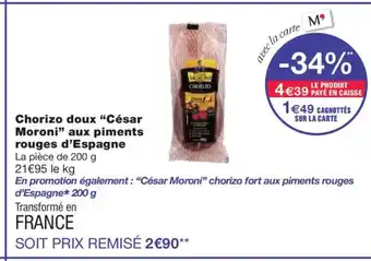 CÉSAR MORONI Chorizo doux aux piments rouges d'Espagne offres et promotions en ligne chez Monoprix