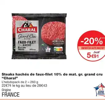 CHARAL Steaks hachés de faux-filet 10% de mat. gr. grand cru : offres et promos Monoprix à découvrir