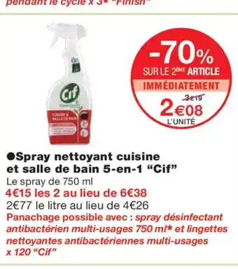 Actuellement en offre chez Monoprix : CIF Spray nettoyant cuisine et salle de bain 5-en-1 ✅ Valable du 21-04 au 3-05.