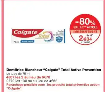 Actuellement en offre chez Monoprix : COLGATE Dentifrice Blancheur Total Active Prevention ✅ Valable du 1-01 au 18-01.