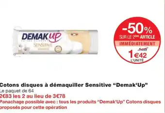 DEMAK UP Cotons disques à démaquiller Sensitive offres et promotions en ligne chez Monoprix