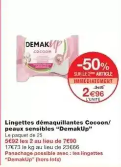 Actuellement en offre chez Monoprix : Demak up - lingettes démaquillantes cocoon/ peaux sensibles ✅ Valable du 20-01 au 1-02.