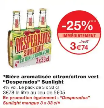 Offre DESPERADOS Bière aromatisée citron/citron vert Sunlight chez Monoprix