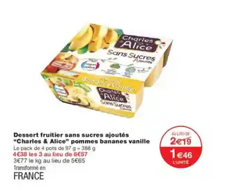 Dessert fruitier sans sucres ajoutés charles & alice pommes bananes vanille : offres et promos Monoprix à découvrir