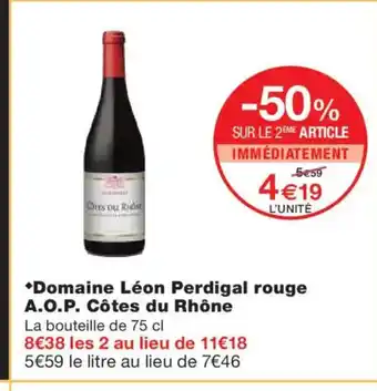Offre Domaine Léon Perdigal rouge A.O.P. Côtes du Rhône chez Monoprix