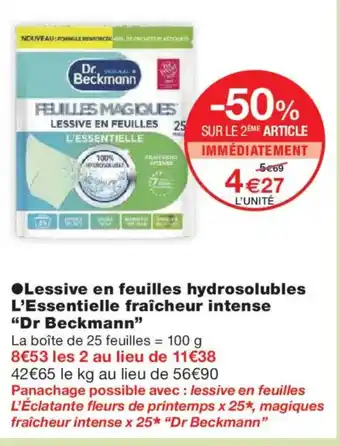 Offre DR BECKMANN Lessive en feuilles hydrosolubles L'Essentielle fraîcheur intense chez Monoprix
