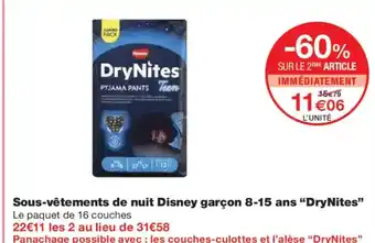 Actuellement en offre chez Monoprix : DRYNITES Sous-vêtements de nuit Disney garçon 8-15 ans ✅ Valable du 20-01 au 1-02.