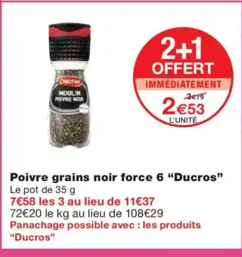 Actuellement en offre chez Monoprix : DUCROS Poivre grains noir force 6 ✅ Valable du 16-12 au 31-12.