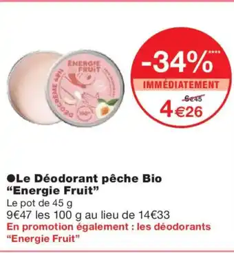 Offre ENERGIE FRUIT Le Déodorant pêche Bio chez Monoprix