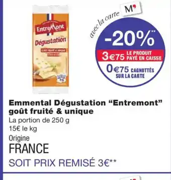 Offre ENTREMONT Emmental Dégustation goût fruité & unique chez Monoprix