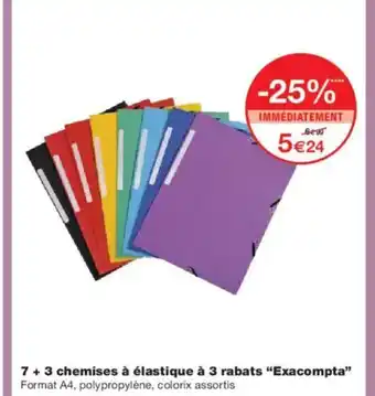 Offre EXACOMPTA 7 + 3 chemises à élastique à 3 rabats chez Monoprix